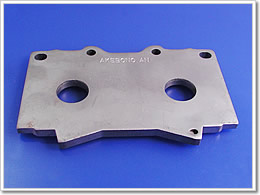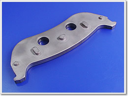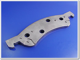 | Features | Precision punching is used to ensure a perpendicular sheared surface because a smooth surface is necessary at the caliper slide. |